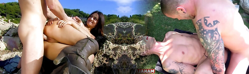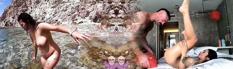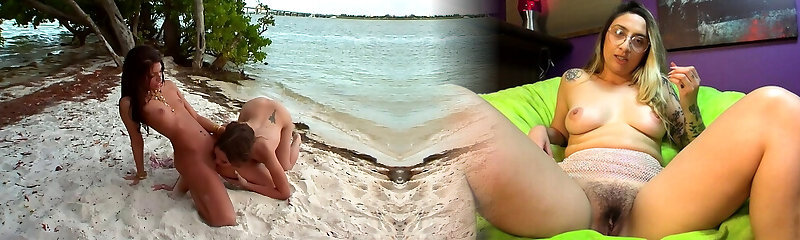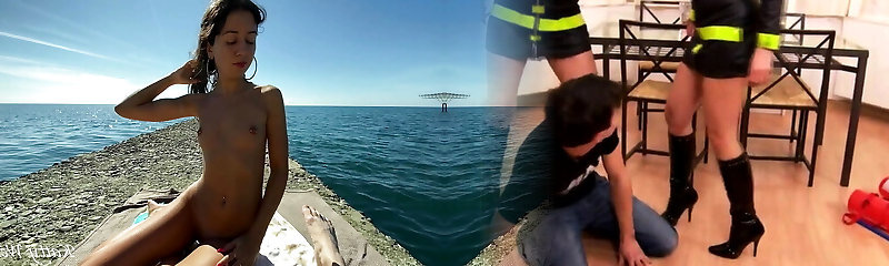 She visits two sizzling boys on the beach and inhales them