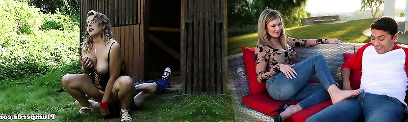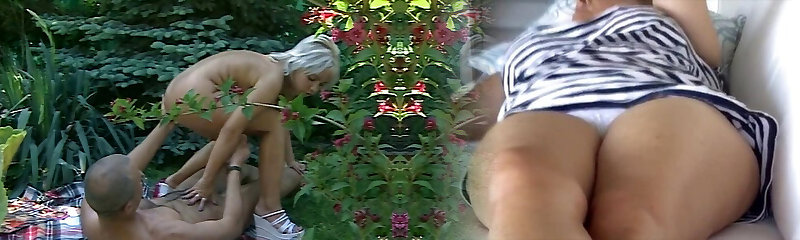 Plumper cougar facesits outdoors in lingerie