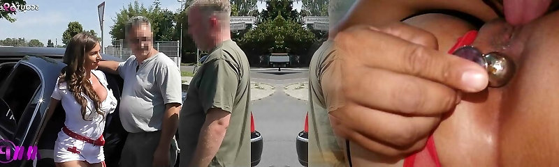 Hot shoot displaying big booty matured Plumper masturbating in car
