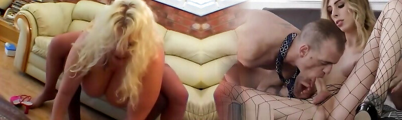 Chubby Hoe Sucking And Drilling Two Giant Peckers In Bed