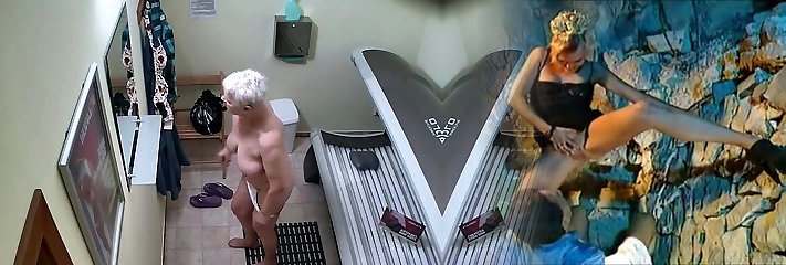 Huge-boobed granny in solarium