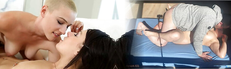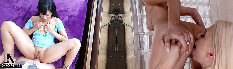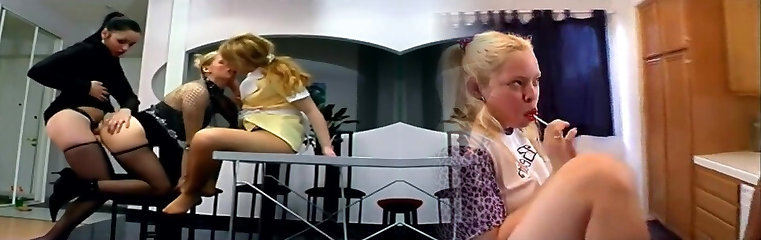 Black hair honey with nice tits on couch fucking fat wood watched by sexy blonde