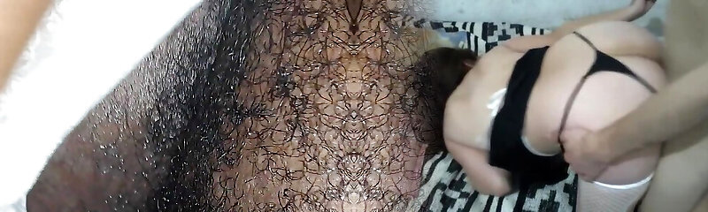 hairy wet butterfly pussy with immense clit enjoys a hard cock