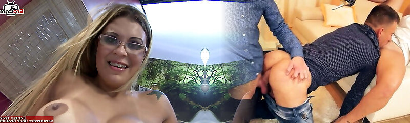 Blonde slut with glasses and big tits enjoys anal fuckfest
