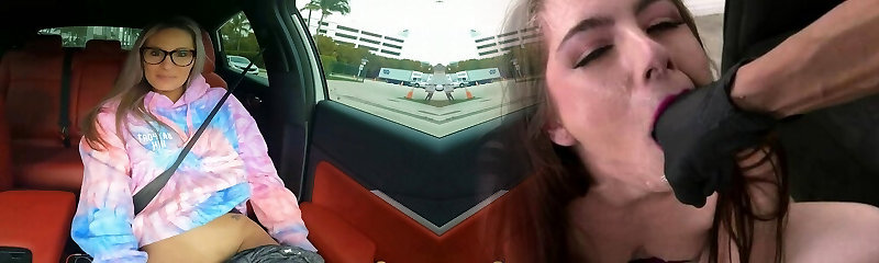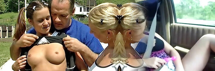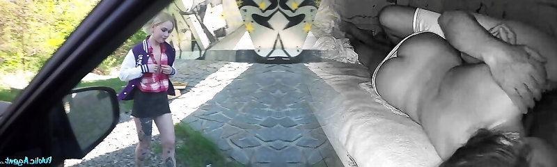 Huge-chested teen fucks him in the van for some cash pov
