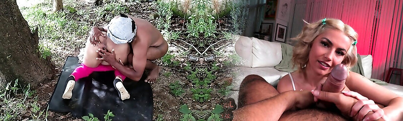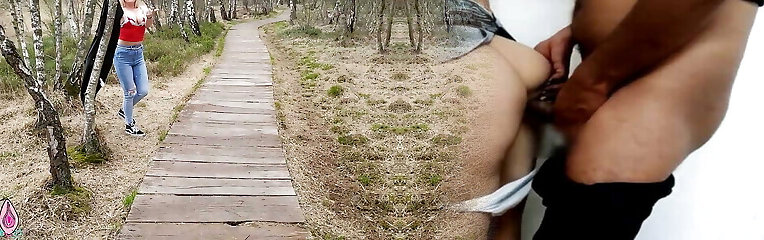Fucking friend hot wifey in wood outdoor risky public sex
