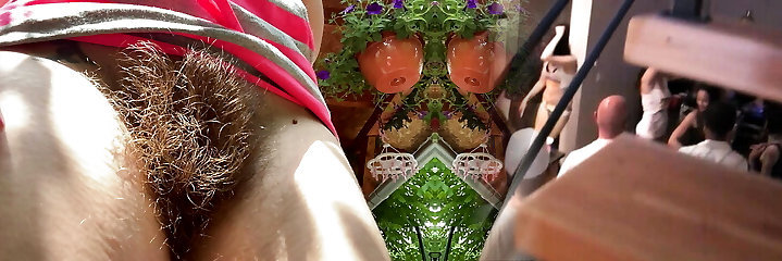 Smoking two cigarettes outside closeup big hairy bush