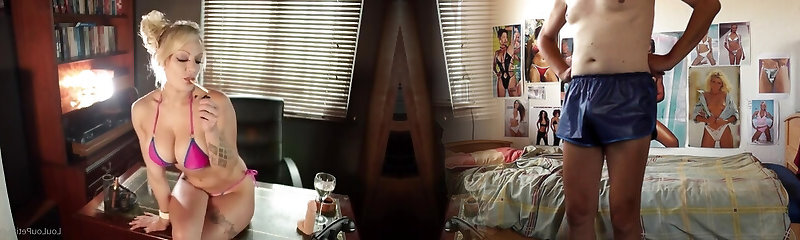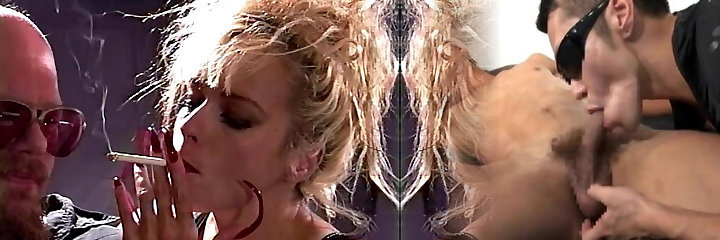 Towheaded Pornstar with Big Tits Smoking While her Wet Pussy Gets Licked by Latex-Clad Lover