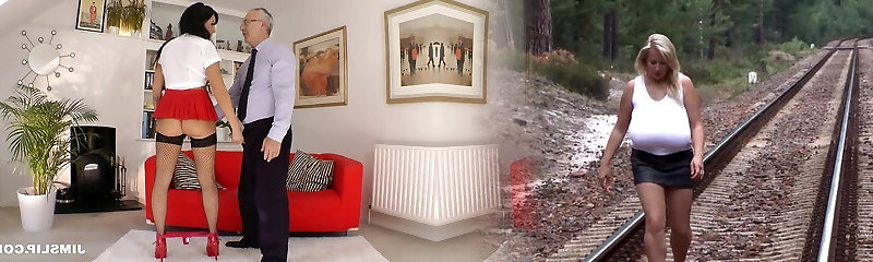 2 old man fucks the splendid school girly 18yo without condom and yam-sized cum on small body