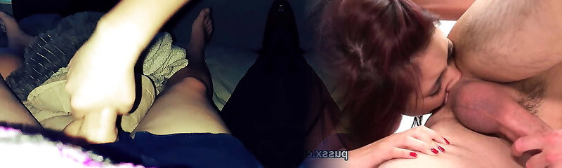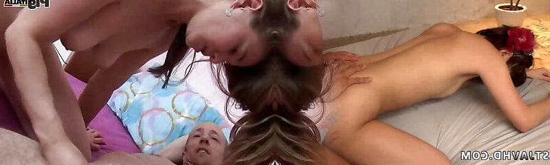 Two sexy brunette teens are sucking big boner - homemade amateurs - homeporn POV